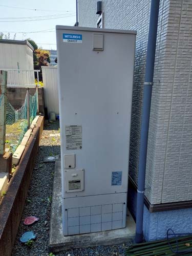 宇都宮市江野町 三菱電機自然冷媒CO2ヒートポンプ給湯機 貯湯タンクユニットSRT-HPTK37W5→パナソニック家庭用ヒートポンプ給湯機 ヒートポンプユニットHE-PLS45L エコキュート交換工事