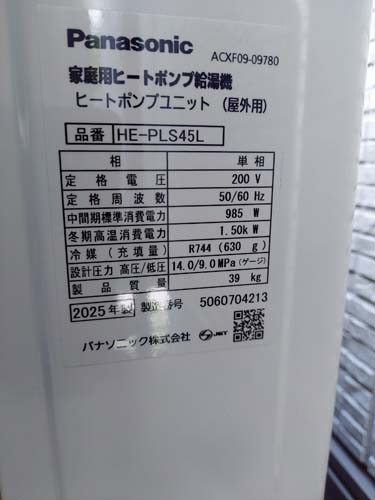 宇都宮市江野町 パナソニック家庭用ヒートポンプ給湯機 ヒートポンプユニットHE-PLS45L エコキュート交換工事|栃木エコキュート取り付け工事センター
